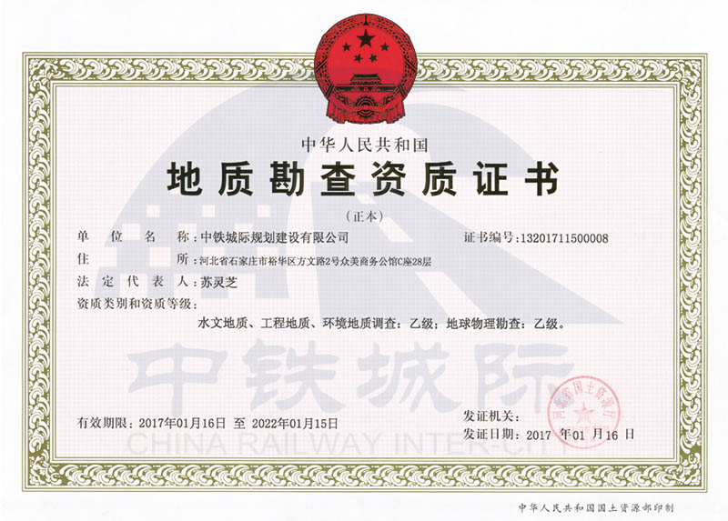 勘察甲級+地災(勘查、設計、施工、評估)甲級+地基基礎施工壹級+工程測量甲級+地理信息系統甲級+界線與不動產測繪乙級+攝影測量與遙感乙級+海洋測繪乙級
