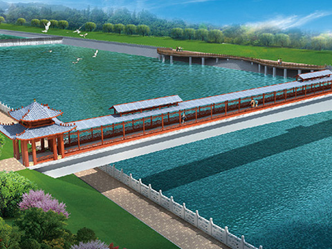 結(jié)構(gòu)整體采用廊、橋結(jié)合的布置形式,體現(xiàn)了人在橋中、橋在畫中的魅力意境