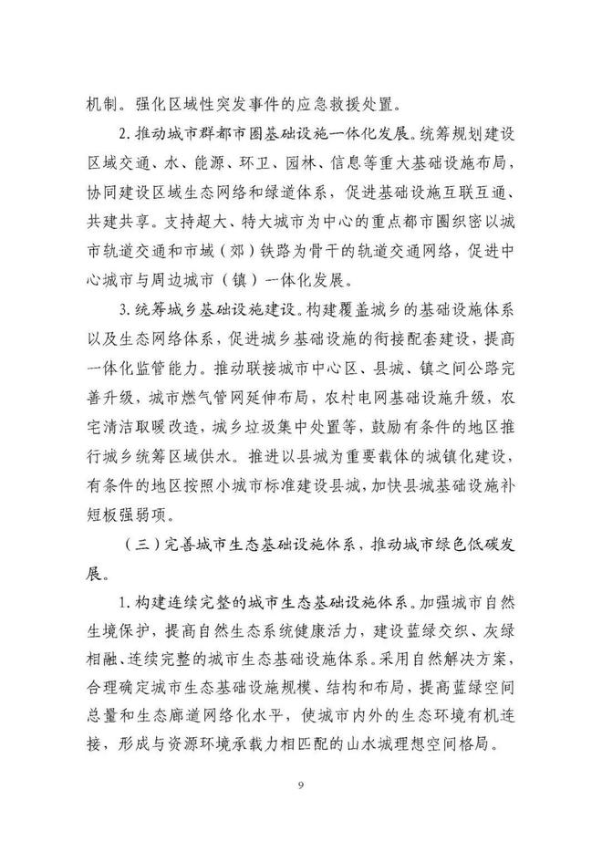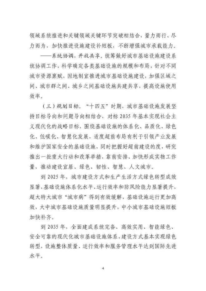 《規(guī)劃》圍繞構建系統(tǒng)完備、高效實用、智能綠色、安全可靠的現(xiàn)代化基礎設施體系,提出4方面重點任務。一是推進城市基礎設施體系化建設,增強城市安全韌性能力。二是推動城市基礎設施共建共享,促進形成區(qū)域與城鄉(xiāng)協(xié)調發(fā)展新格局。三是完善城市生態(tài)基礎設施體系,推動城市綠色低碳發(fā)展。四是加快新型城市基礎設施建設,推進城市智慧化轉型發(fā)展。