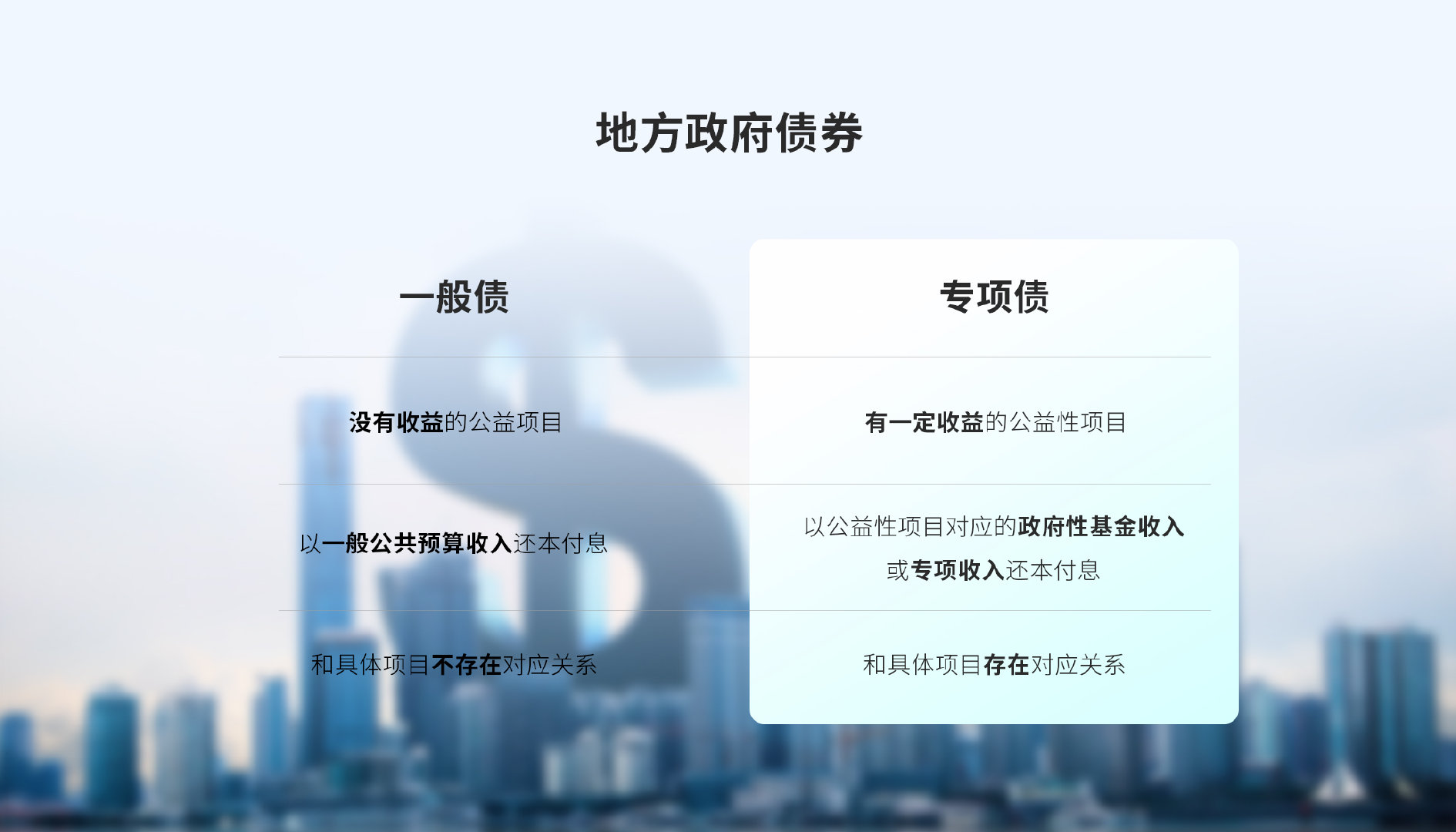 一般債運用于沒有收益的公益性項目,是以一般公共預算收入還本付息的,和具體項目不存在對應關系,也就是說,不需要具體問題、具體分析