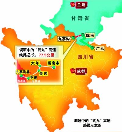 武九高速公路起點(diǎn)位于武都區(qū)桔柑鄉(xiāng)賈家坪村,與武罐高速公路以樞紐立交相接,終點(diǎn)位于文縣青龍橋(甘川界),順接綿陽(yáng)至九寨溝高速公路,路線全長(zhǎng)100.6公里,估算投資179.61億元。