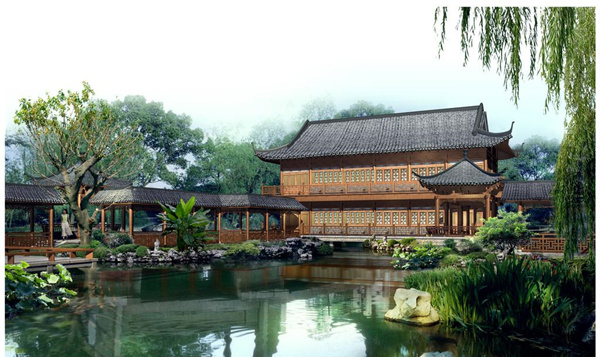 (2)尊重自然,追求天人合一的藝術(shù)效果。中國(guó)傳統(tǒng)園林設(shè)計(jì)思想的根本特征是“自然”,諸如“有若自然”、 “妙在自然”、 “宛若自然”之吾,和傳統(tǒng)繪畫(huà)藝術(shù)一樣,中國(guó)古典園林也是要求“外師造化,中得心源”,力求營(yíng)造出人與自然和諧共處的園林景致。