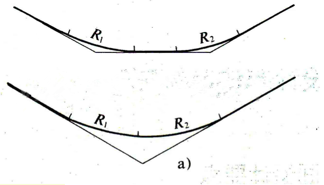 反向曲線:相鄰反向豎曲線之間,為使增重與減重間和緩過渡,中間最好插入一段直坡段。若兩豎曲線半徑接近極限值時,這段直坡段至少應為計算行車速度的3S行程。當半徑比較大時,亦可直接連接。