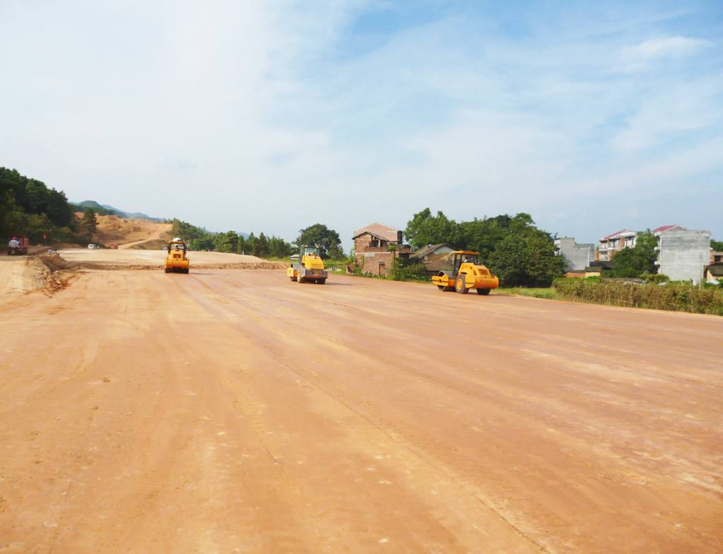 6、路基碾壓。其方法是:第一遍用震動壓路機靜壓進行穩壓,然后再震動壓實。