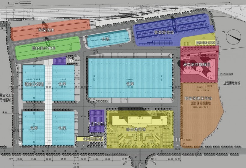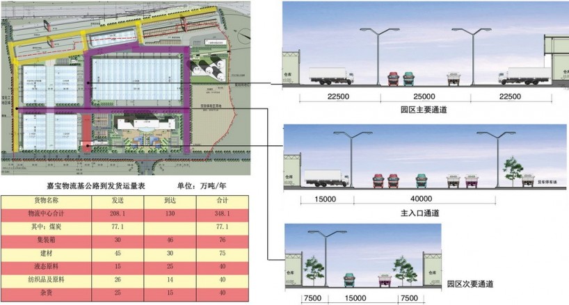 嘉寶物流園區的總平面布置原則是:根據項目六大部分的內容、流程、內外交通運輸等情況,按場地的自然條件、功能要求與專業的設計規范進行規劃布局,達到流程順暢、物流線路簡捷、進出分道、生產調度方便,并考慮用地少、施工費用節約的要求。