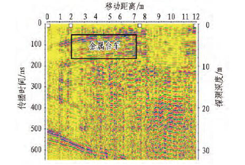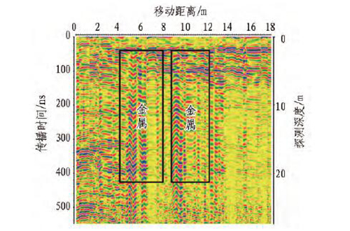 1) 地質雷達探測時需將金屬物體移至測線外一定距離。對于會對探測結果產生干擾又無法移走的干擾體,應詳細記錄其相關信息,包括干擾體的屬性與大小以及干擾體與測線的相對位置關系等,并通過信號處理從雷達圖像上識別或剔除干擾波,降低誤判率。