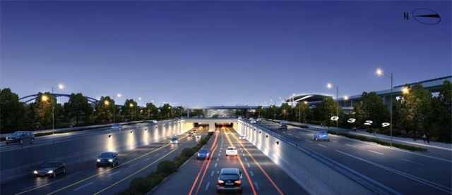 :快速路主線西起湖安路,以地面形式過鏡水路,再以地道形式下穿杭甬高鐵紹興北站區段,接著以地面道路形式向東經綠云路、解放大道之后起坡,保留綠云路和解放大道立交。主線過解放大道之后,起坡以高架形式跨越湯公路、中興大道、越東路等,越東至孫曹公路交叉口段還在研究中。