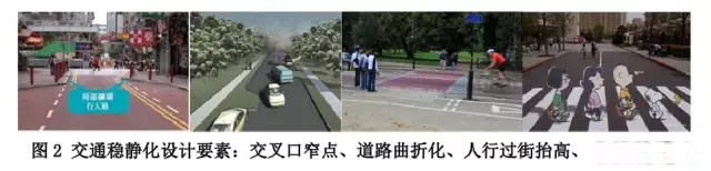因此,在城市支路級(jí)別道路改造中,我們引入了城市交通穩(wěn)靜化(Traffic calming)理念,通過(guò)壓縮機(jī)動(dòng)車(chē)道寬度、設(shè)置道路線(xiàn)型曲折化、縮小轉(zhuǎn)彎半徑以及路面鋪裝材料變化等措施,減少社區(qū)穿越性交通,實(shí)現(xiàn)對(duì)車(chē)速的管控,以保障居民出行及活動(dòng)安全。