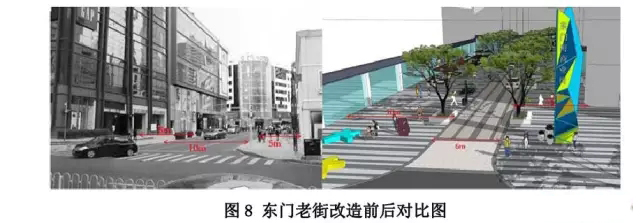 ● 東門(mén)老街:機(jī)動(dòng)車(chē)道由10 米壓縮至米,兩側(cè)人行道分別從米加寬至米,從8米加寬至10米。