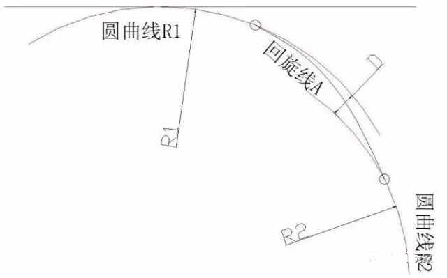 (2)兩圓曲線半徑之比宜在下列界限之內:0.2≤R2/R1≤ 0.8(R1為大圓半徑);