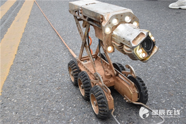 “前頭是個攝像頭,能360度旋轉(zhuǎn)進行拍攝,緊挨著攝像頭的位置有4個大燈。”劉燕軍介紹,機器人的中間位置有個升降架,這便于探測不同高度的下水井,機器人拖著的一條“尾巴”則是連接器,將探測到的畫面形成影像傳輸?shù)诫娔X中。據(jù)了解,目前長沙縣已有20臺左右這樣的管道機器人在作業(yè),大力提升了工作效率。