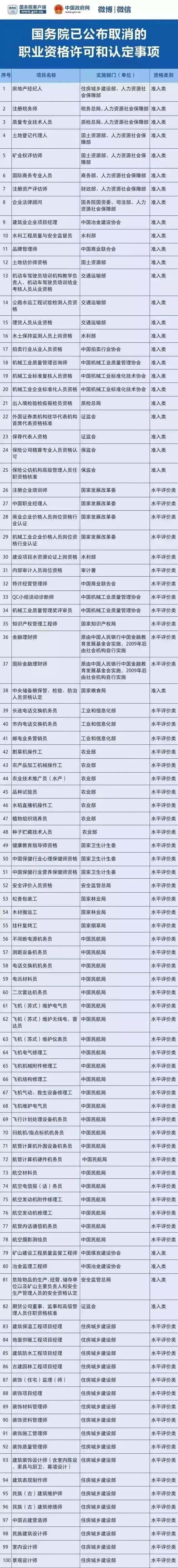 下面就是被國務(wù)院取消的資格認(rèn)定,大家看一看,以后千萬別浪費(fèi)時(shí)間在這些證書的考取上面了: