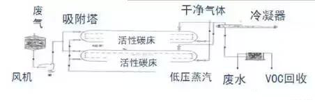 原理:利用吸附劑與污染物質(VOCs)進行物理結合或化學反應并將污染成分去除