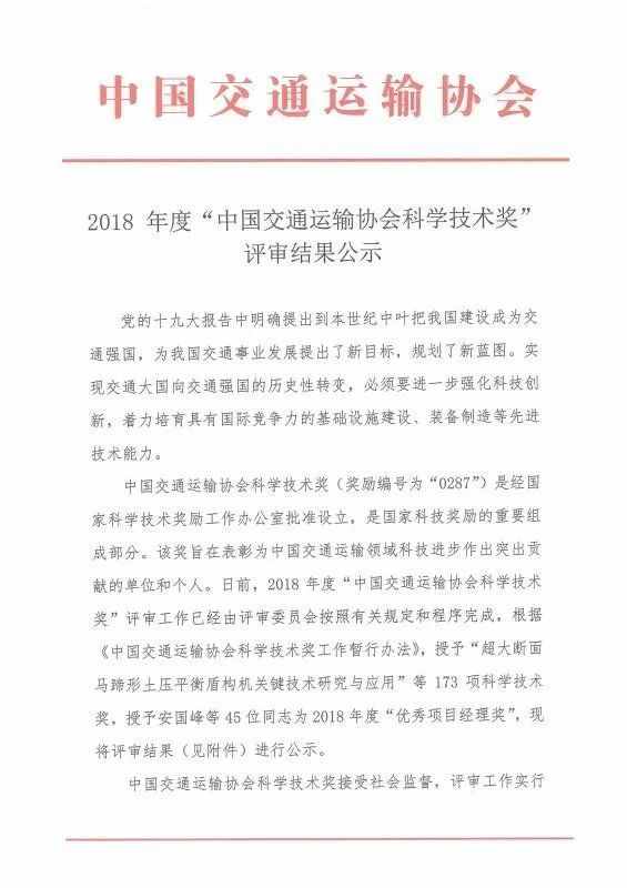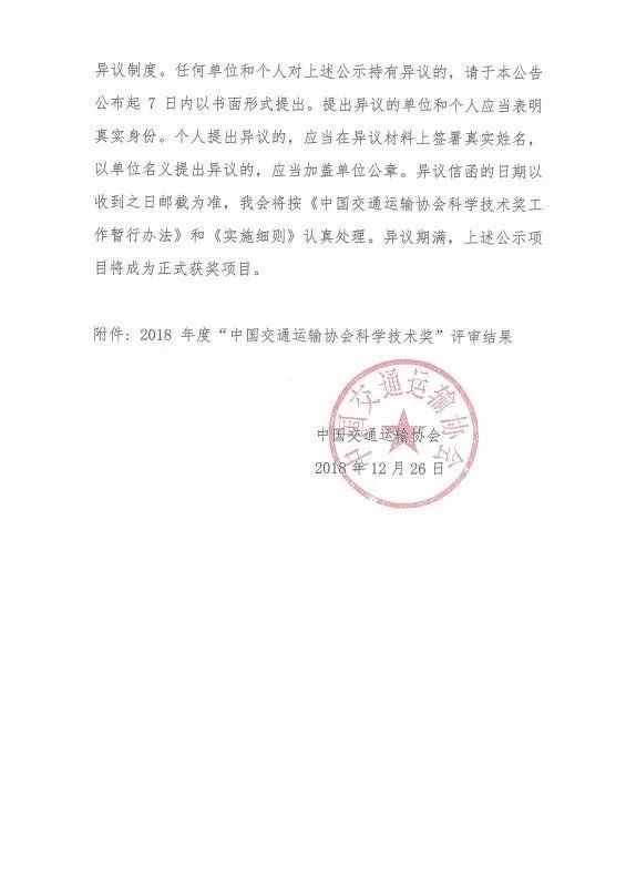 2018年度“中國交通運(yùn)輸協(xié)會(huì)科學(xué)技術(shù)獎(jiǎng)”評審結(jié)果公示