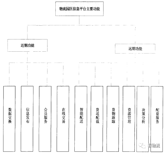根據(jù)物流園區(qū)的作業(yè)、管理內(nèi)容、運作需要等方面來看,物流園區(qū)信息平臺應具備以下的一些主要功能,如圖所示 按照分步實施,循序漸進的原則,把其分為近期功能和遠期功能兩部分 先建設近期功能項目,再建設遠期功能項目這些項目涉及現(xiàn)代物流寬帶網(wǎng)絡系統(tǒng)、物流業(yè)務信息系統(tǒng)、現(xiàn)代物流園區(qū)內(nèi)部管理信息服務系統(tǒng)及商務信息系統(tǒng) .