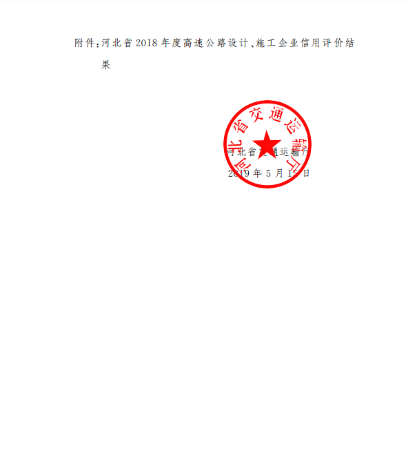 河北省交通運輸廳關于發布河北省2018年度高速公路設計、施工企業信用評價結果的通知