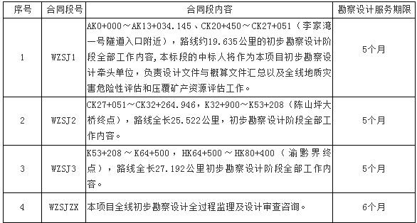 萬盛至正安高速公路重慶段啟動初步勘察設(shè)計,2019年6月4日發(fā)布了初步勘察設(shè)計及技術(shù)咨詢服務(wù)招標(biāo)公告。據(jù)悉萬盛至正安高速公路重慶段劃分4個合同標(biāo)段。估算總投資162.7億元,建安費(fèi)約118.4億元。