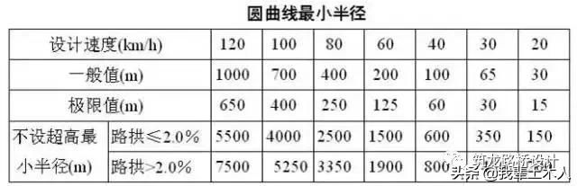 是各級公路采用最大超高imax和允許的最大橫向摩阻系數(shù)下保證安全行車的最小允許半徑。