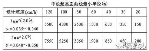 (3)有條件時,最好采用不設(shè)超高的最小半徑。
