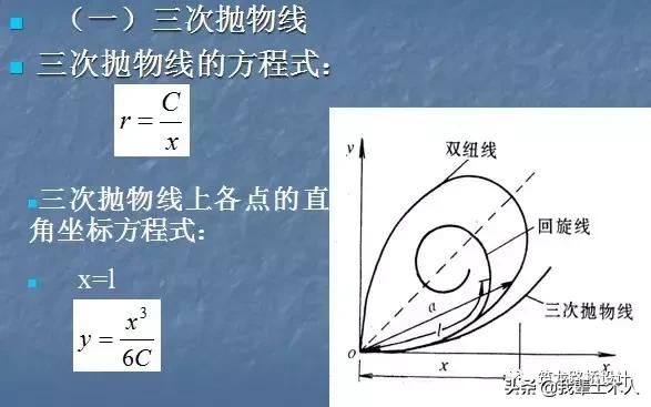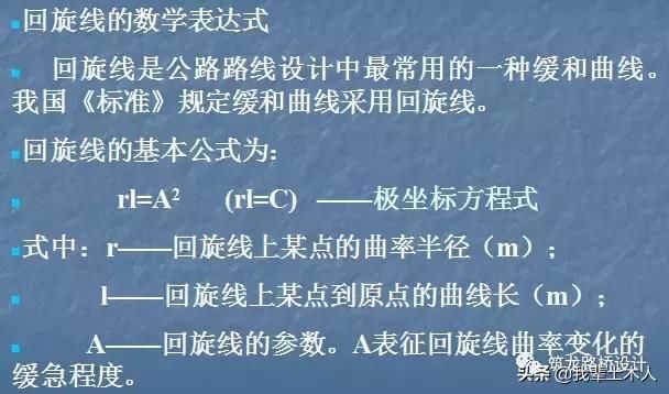 此外,也有使用n次(n≥3)拋物線、正弦形曲線、多圓弧曲線作為緩和曲線的。但世界各國使用回旋曲線居多,我國《標(biāo)準(zhǔn)》推薦的緩和曲線也是回旋線。