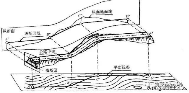 路線縱斷面設(shè)計:研究道路縱坡及坡長的過程。 路線橫斷面設(shè)計:研究路基斷面形狀與組成的過程。