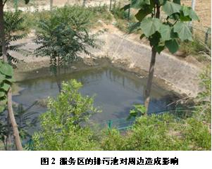 3、服務區場地技術層面存在的問題,一是運營中產生的廢棄物(包括廢水、生活垃圾)缺少必要的配套處理設施,導致服務區周邊污染;二是場地排水缺乏設計,由于區內硬質地面多,暴雨時容易造成局地暴雨徑流,而雨水本可以充分利用,彌補服務區自打井時常供水不足的問題,這在干旱、半干旱地區尤為重要(如圖2所示)。