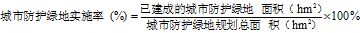 13、 城市防護綠地實施率應按下式計算:
