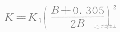 式中 K1——是0.305m寬標準荷載板的標準基床系數或K30值。