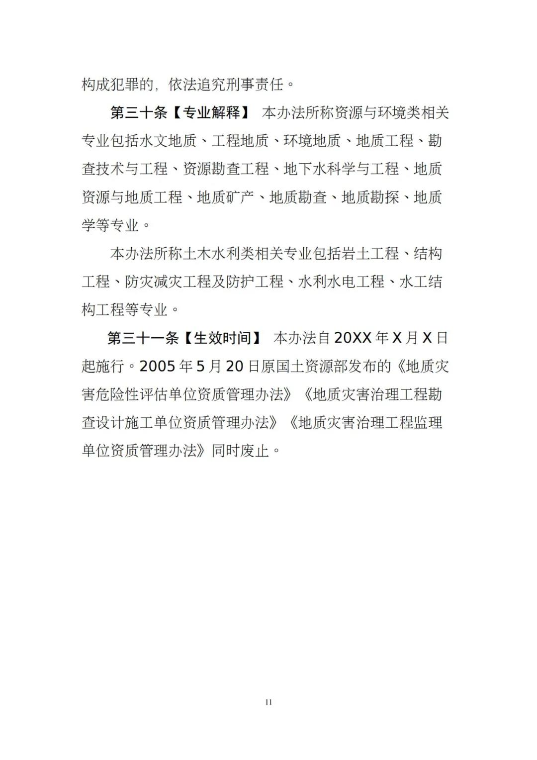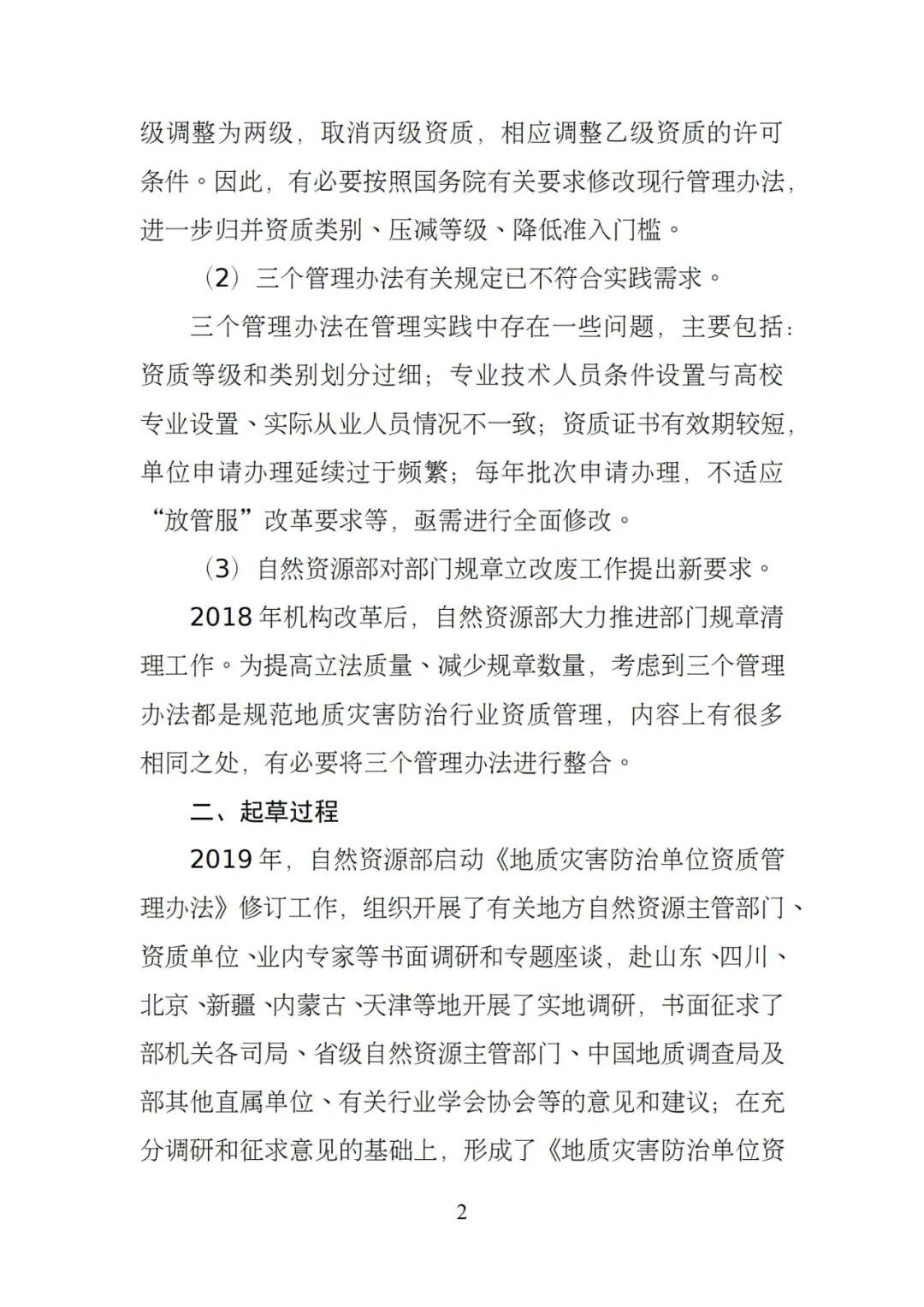 1.地質災害防治單位資質管理辦法(征求意見稿)2.關于《地質災害防治單位資質管理辦法(征求意見稿)》的起草說明