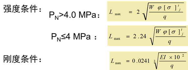 一般規定:管道支吊架應根據管道系統的總體布置綜合確定。支吊系統合理承受管道的動荷載、靜荷載和偶然荷載,合理約束管道位移,防止管道振動。在各種工況下,管道應力均在允許范圍內。滿足管道所連設備對接口推力(力矩)的限制要求。確定支吊架間距時,應滿足管道強度、剛度、防振動的要求。
