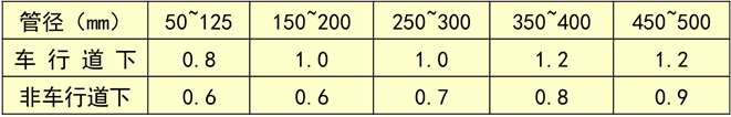 直埋敷設管道最小覆土深度應考慮土壤和地面活荷載對管道強度的影響并保證管道不發生縱向失穩。具體規定應按《城鎮直埋供熱管道工程技術規程》CJJ/T81規定執行。