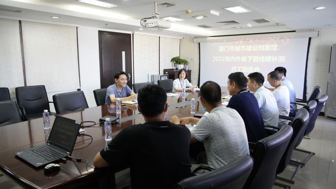 6月27日下午,廈門市第十一次(2022年度)島內外地下管線修補測項目開工動員會在建設大廈召開。市城建檔案館以及項目探測單位、監理單位和數據建庫單位的分管領導和項目主要人員參加會議。