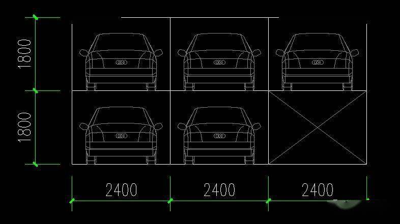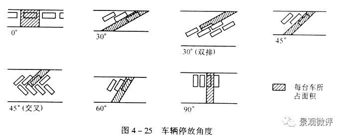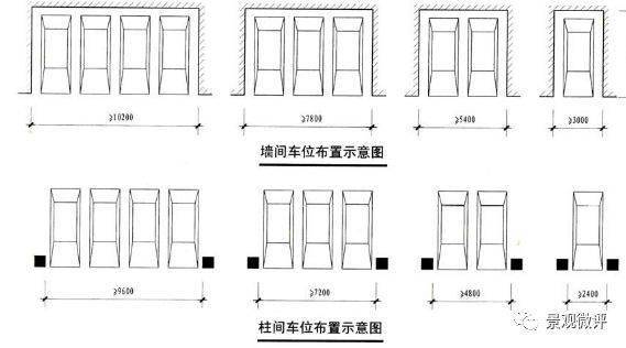 ● 90°直角停放時(shí)可以從兩個(gè)方向進(jìn)出車(chē),所用面積指標(biāo)最小,但需要較寬的行車(chē)通道,適用于大面積多跨的停車(chē)間。