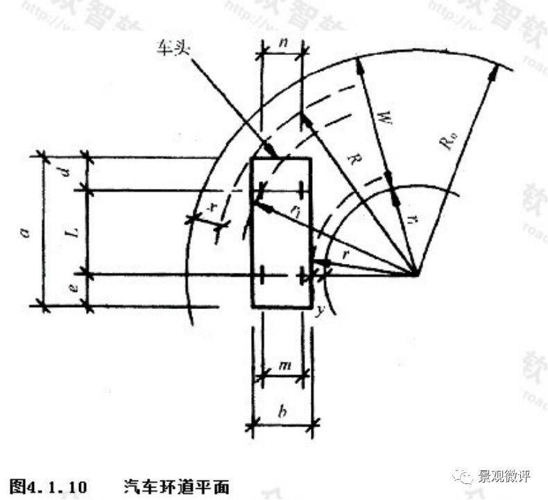 回轉(zhuǎn)軌跡表明當(dāng)汽車(chē)回轉(zhuǎn)狀態(tài)下的環(huán)道內(nèi)外半徑不同,則最小道寬尺寸也將不同。
