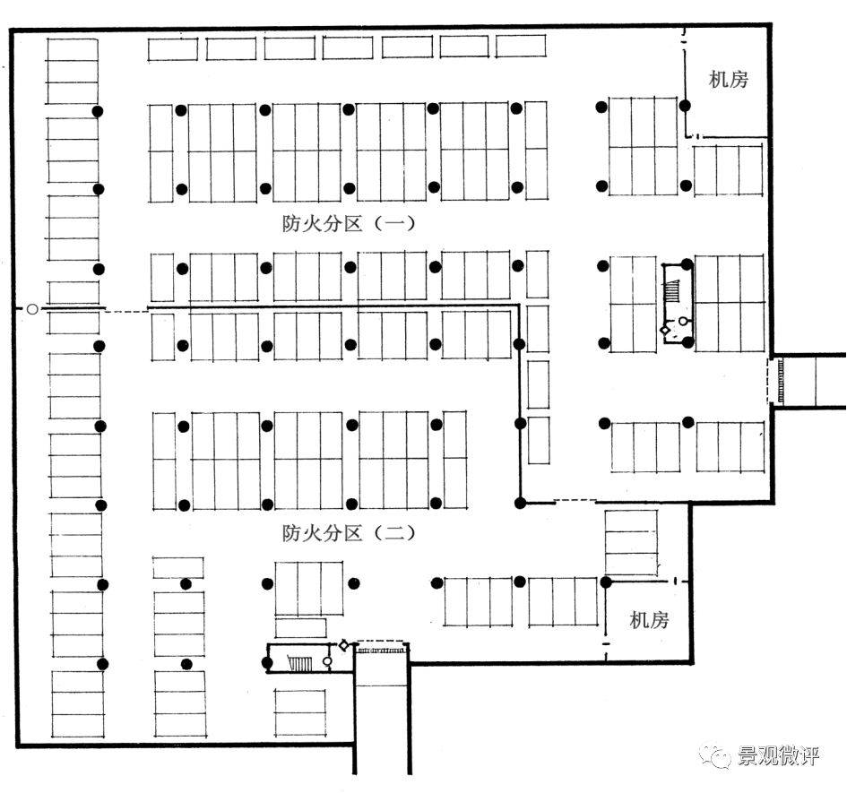 注:當(dāng)汽車(chē)庫(kù)設(shè)有自動(dòng)噴淋系統(tǒng)時(shí),其面積可增加一倍。