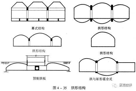 拱形結(jié)構(gòu)有單跨、多跨、幕式及拋物線拱、頂制拱板等多種類(lèi)型
