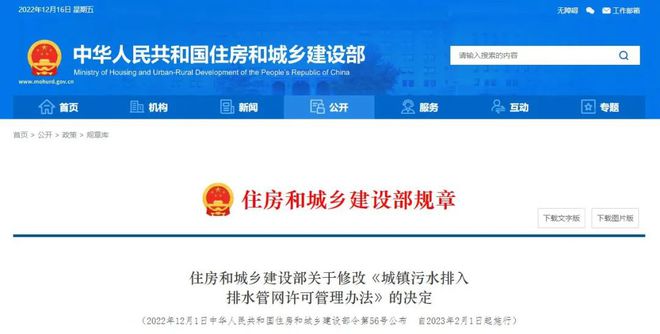 本決定自2023年2月1日起施行?!冻擎?zhèn)污水排入排水管網(wǎng)許可管理辦法》根據(jù)本決定作相應(yīng)修改,重新發(fā)布。