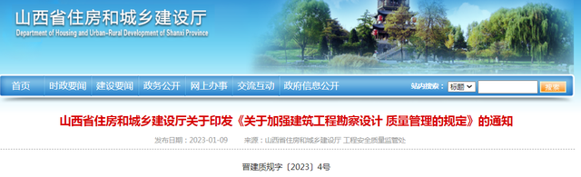 山西印發(fā)《關(guān)于加強建筑工程勘察設(shè)計 質(zhì)量管理的規(guī)定》
