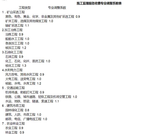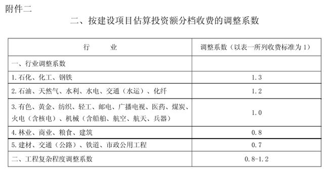 工程復(fù)雜程度調(diào)整系數(shù):0.8~1.2(工程復(fù)雜程度具體調(diào)整系數(shù)由工程咨詢機(jī)構(gòu)與委托單位根據(jù)各類工程情況協(xié)商確定)。