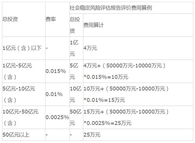 社會穩(wěn)定風(fēng)險(xiǎn)評估咨詢?nèi)≠M(fèi)可參考地方收費(fèi)標(biāo)準(zhǔn),如上海市地方標(biāo)準(zhǔn)——《上海市重點(diǎn)建設(shè)項(xiàng)目社會穩(wěn)定風(fēng)險(xiǎn)評估咨詢服務(wù)收費(fèi)暫行標(biāo)準(zhǔn)》(滬發(fā)改投〔2012〕130號),以估算總投資額為計(jì)費(fèi)基數(shù),根據(jù)建設(shè)項(xiàng)目不同的性質(zhì)、內(nèi)容和所處區(qū)域,采取按估算投資額分檔定額計(jì)費(fèi)。