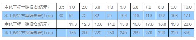 水土保持咨詢服務(wù)取費(fèi)可參考《關(guān)于開發(fā)建設(shè)項(xiàng)目水土保持咨詢服務(wù)費(fèi)用計(jì)列的指導(dǎo)意見》(保監(jiān)〔2005〕22號),其中可行性研究階段的開發(fā)建設(shè)項(xiàng)目水土保持方案編制費(fèi)可參考下表標(biāo)準(zhǔn)計(jì)列。