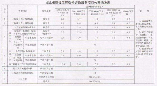 湖北省3000萬元以下建設(shè)項(xiàng)目估算投資額分檔收費(fèi)標(biāo)準(zhǔn)