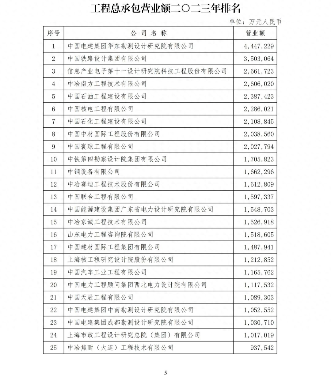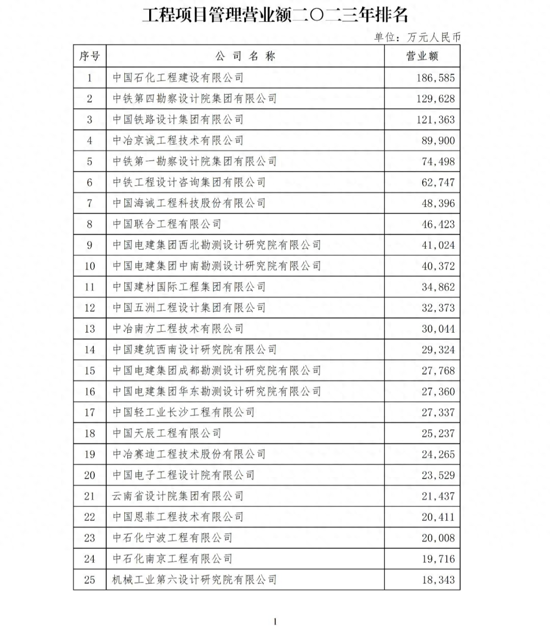 勘察設計企業(yè)工程項目管理和工程總承包營業(yè)額2023年排名出爐