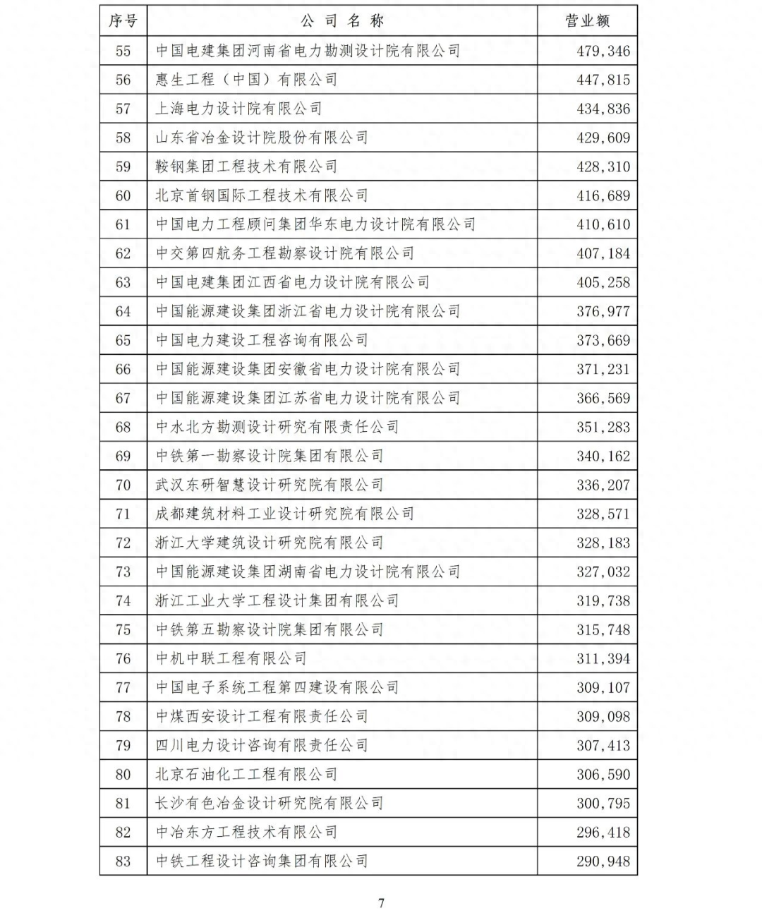 關于公布勘察設計企業(yè)工程項目管理和工程總承包營業(yè)額二〇二三年排名的通知
