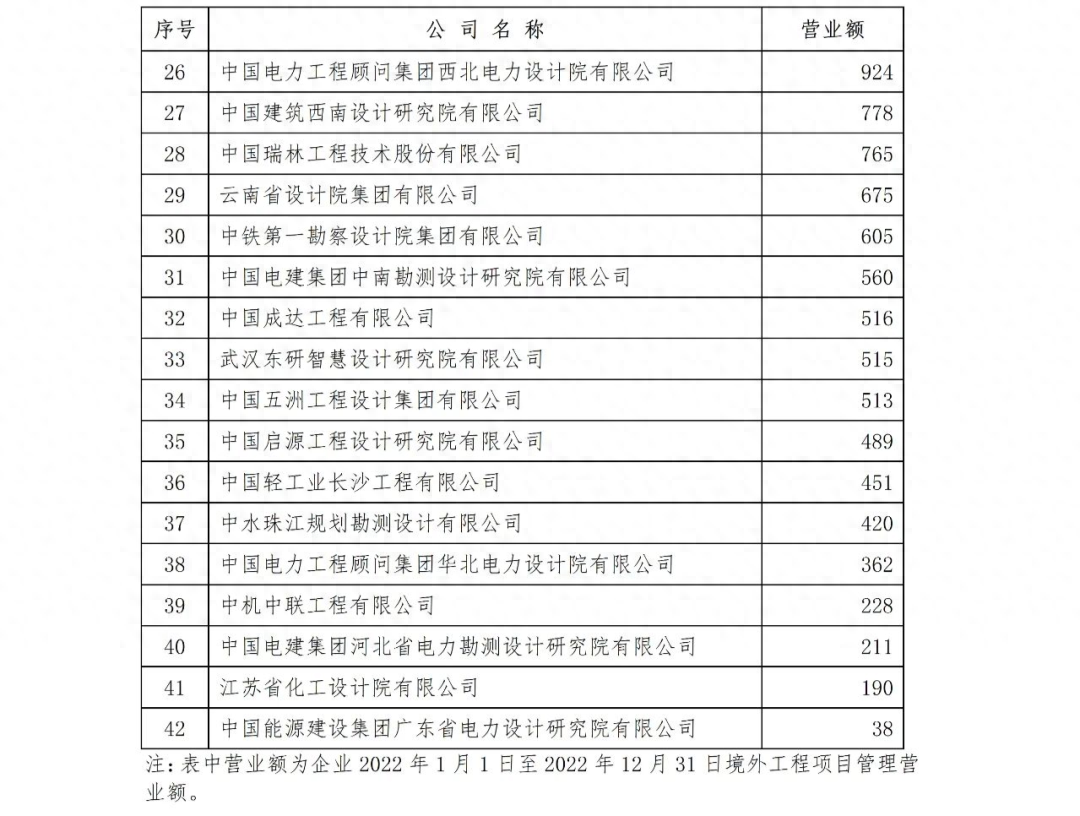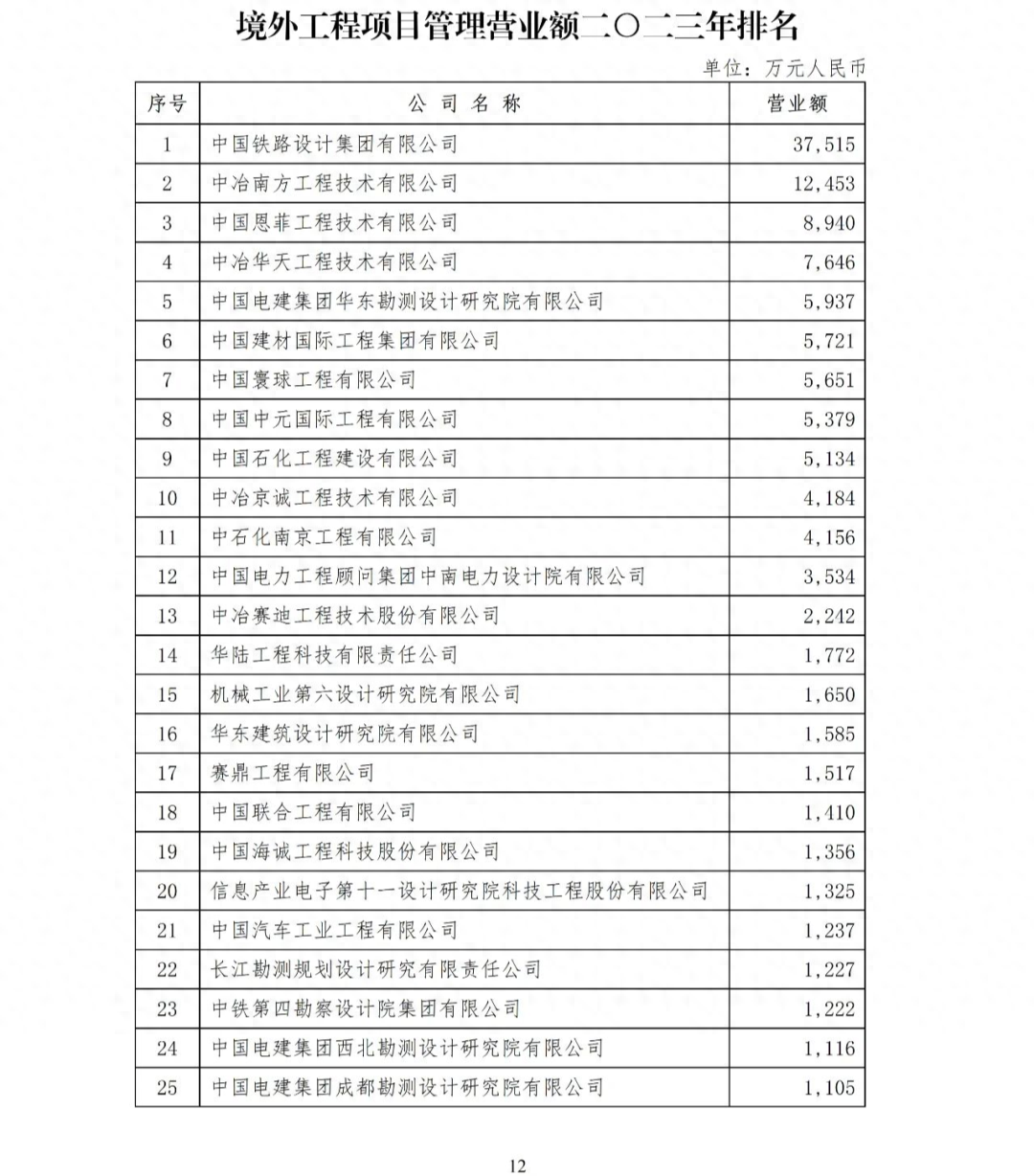 3.境外工程項目管理營業(yè)額二〇二三年排名