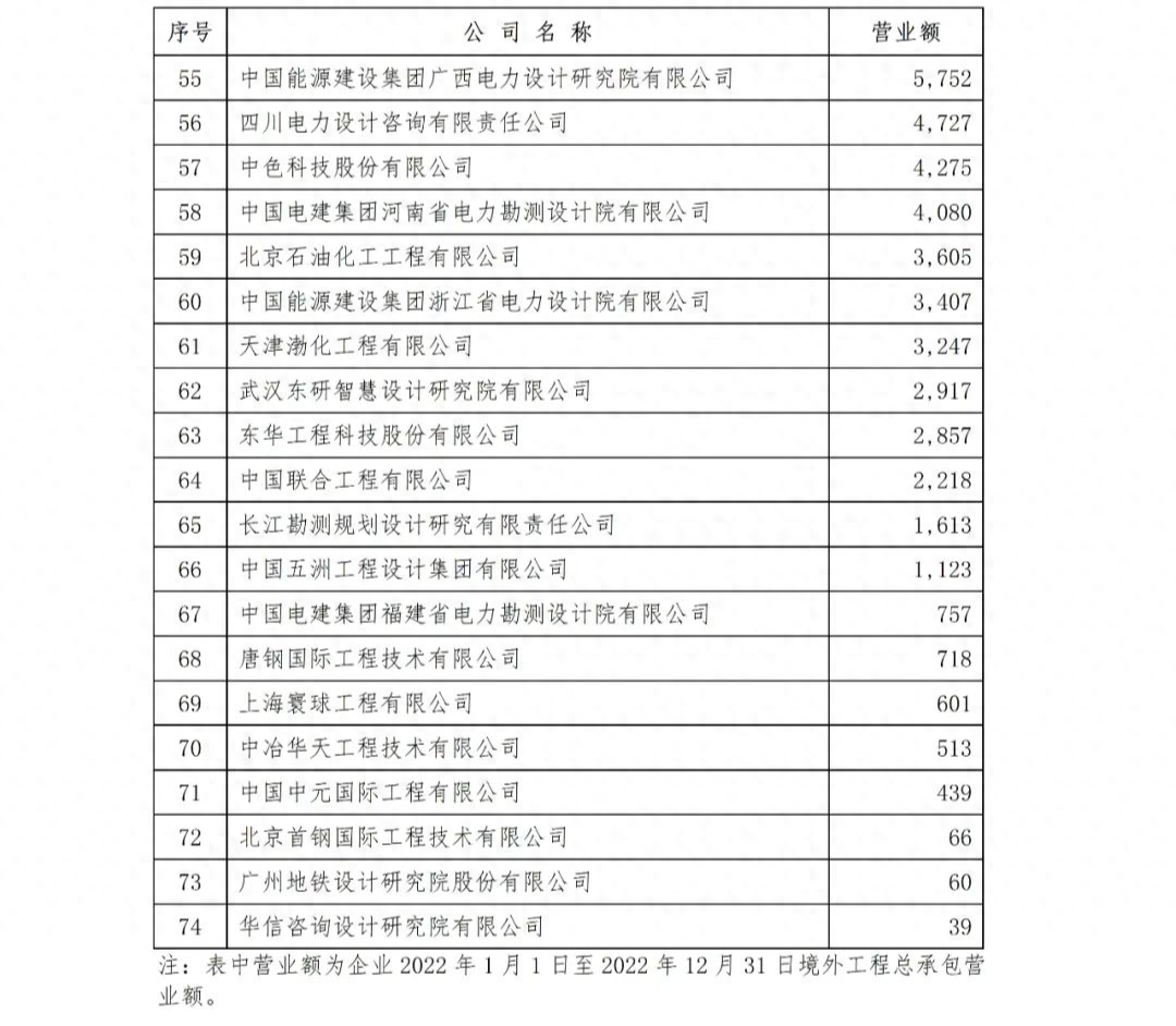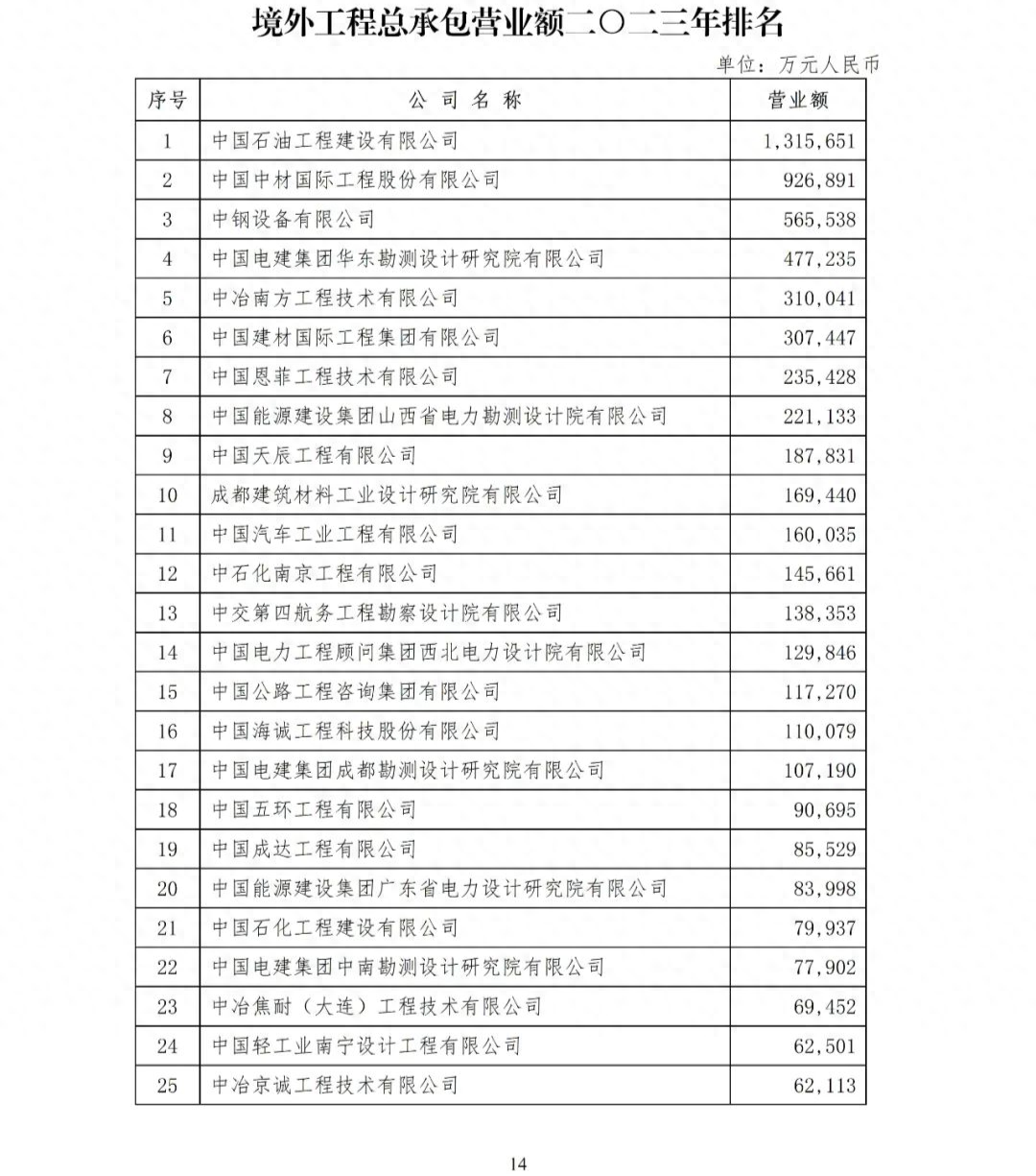 4.境外工程總承包營業(yè)額二〇二三年排名