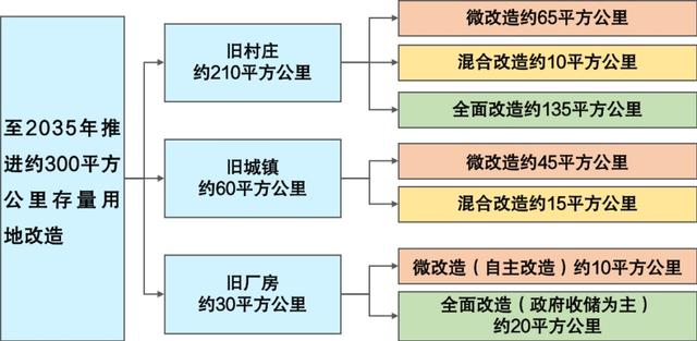 《專項(xiàng)規(guī)劃》統(tǒng)籌新增用地與存量用地資源配置,規(guī)劃至2025年,累計(jì)推進(jìn)城市更新約130平方公里(含城中村改造70平方公里);至2030年,累計(jì)推進(jìn)城市更新約230平方公里(含城中村改造120平方公里);至2035年累計(jì)推進(jìn)城市更新約300平方公里(含城中村改造155平方公里),通過(guò)微改造、混合改造、全面改造多種方式并舉,推動(dòng)低效存量土地的盤(pán)活再利用。