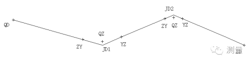 ② 確定 QZ點:從JDl開始,沿JDlP向P方向量取外矢距的長度,此點即為QZ點。具體操作如下: