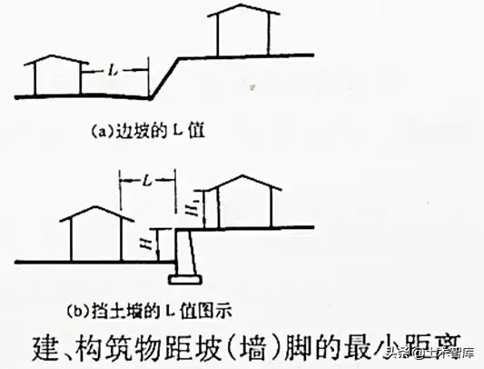 1)擋土墻、護坡與建筑的最小間距應符合下列規定: