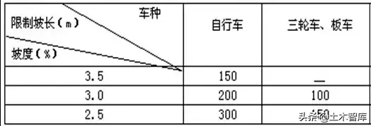1、非機動車車行道規劃縱坡與限制坡長: